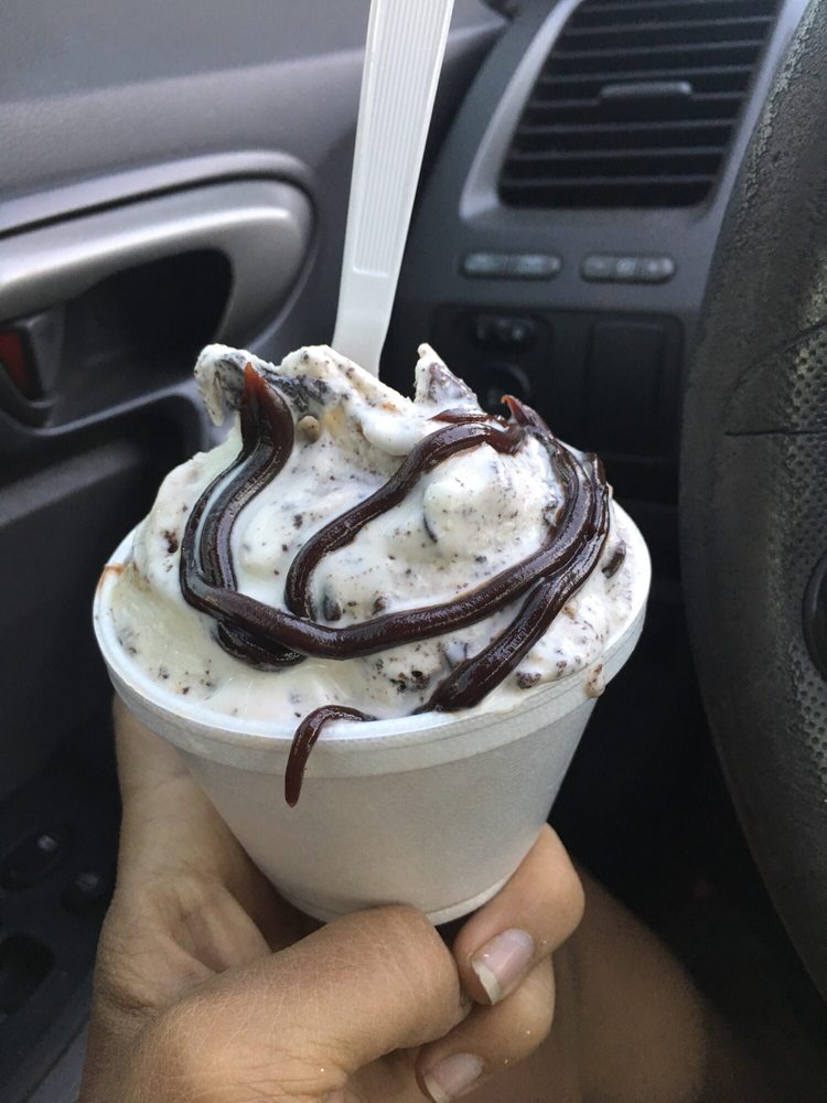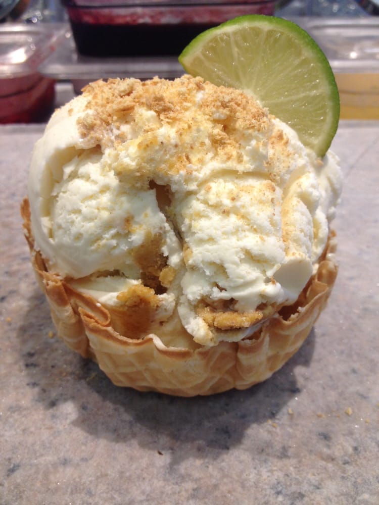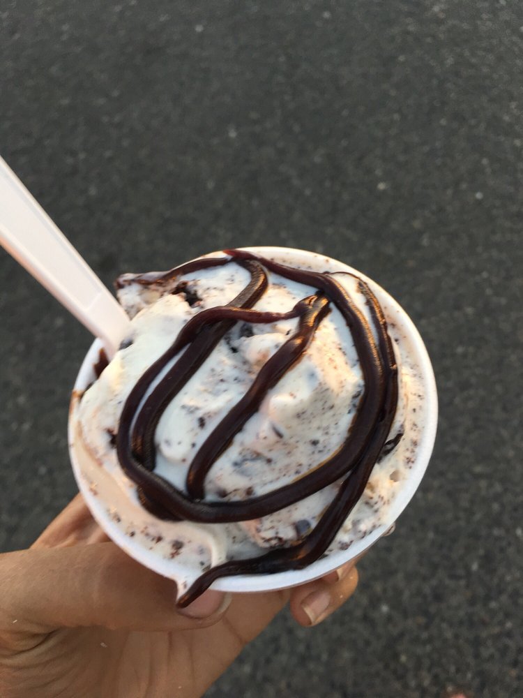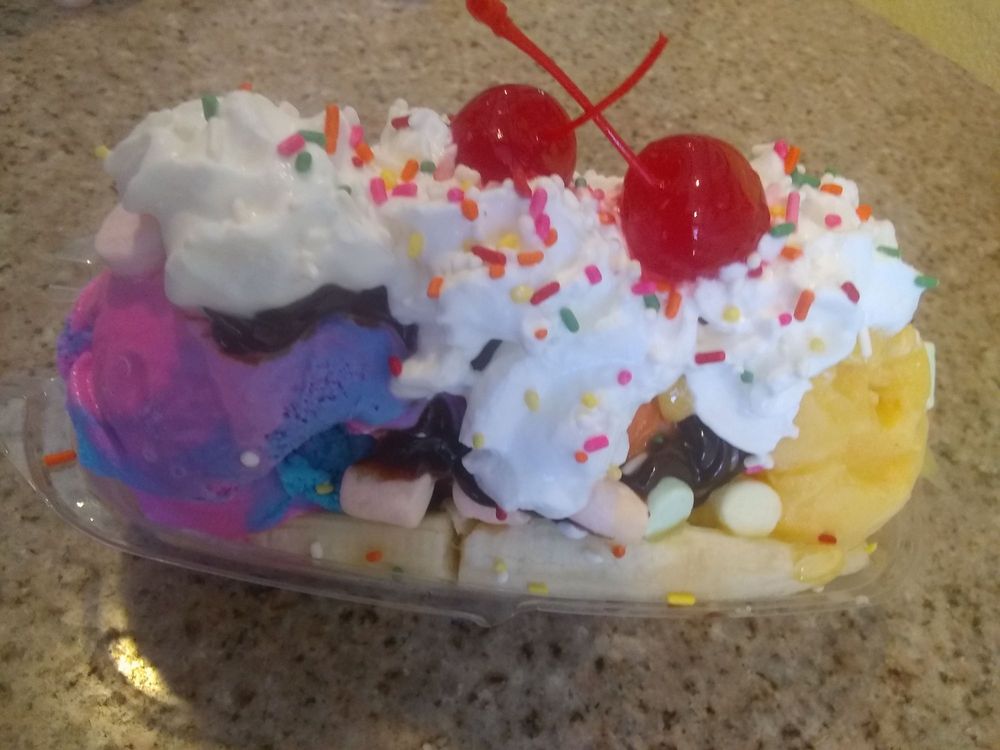 3 scoops, 3 toppings, whip cream, drizzle, waffle cone chips.